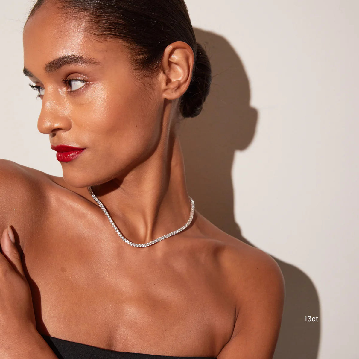 Elevate your style with this timeless White Sapphire Tennis Necklace. Crafted with precision, each sparkling white sapphire is set in a delicate, yet durable design, creating a sophisticated and elegant look. Perfect for adding a touch of luxury to any occasion, this necklace offers versatility and brilliance, making it a must-have accessory for refined taste.